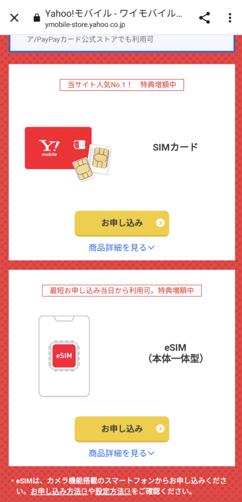 ①WebサイトからeSIMの「お申し込み」ボタンをタップ