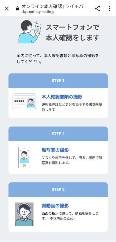 Y!mobileの公式サイトから申し込みができます。手続きのなかで、本人確認書類や顔の写真を撮影する必要があるため、申し込みはスマホから行いましょう。