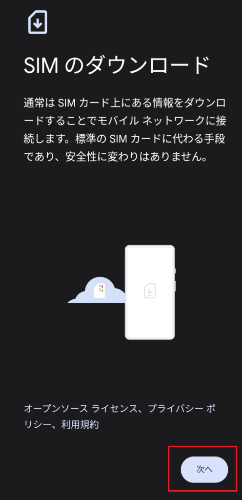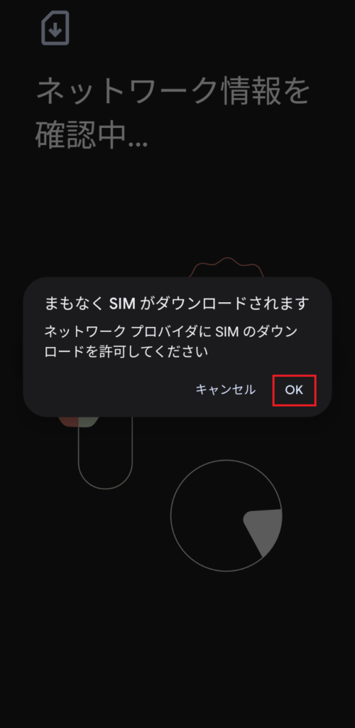 ⑤「まもなくSIMがダウンロードされます」の「OK」をタップ