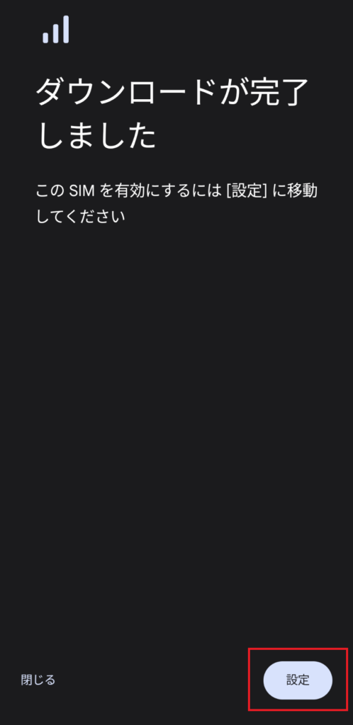 ⑧「ダウンロードが完了しました」で「設定」をタップ