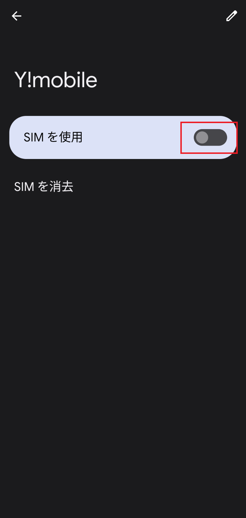 ⑨「SIMを使用」をタップしてスライドし、SIMを有効化