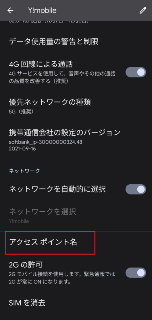 最後にAPN設定を行います。これは自動で設定されていることもあるため、その場合は確認のみです。Androidの詳しいAPN設定方法はこちらから確認できます。